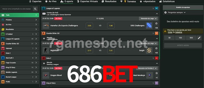 O 686Bet oferece uma grande seleção de opções de apostas em e-sports com probabilidades competitivas